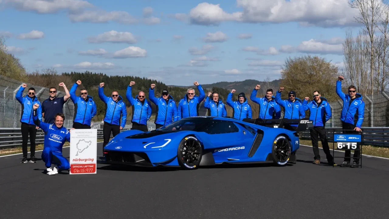 The 12.9-mile North Loop, affectionately referred to as the Green Hell, is one of the world’s most grueling race tracks. The Porsche 919 Hybrid Evo currently claims the fastest time with an almost unbelievable 5:19.546 time. Then, the Volkswagen ID.R (6:05.336) and the electric Xiaomi SU7 Ultra Prototype (6:22.091) rounded out the top three…until now. The Ford team’s most recent ‘Ring record leapfrogs Xiaomi’s EV as well as the Lotus Evija, with the GT Mk IV’s 6:15.977 officially putting Ford in third place. Not only that, but it’s now the fastest American OEM, while the GT is also the fastest gas-powered car without any electrification as well.